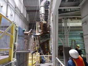 DR Anderson's Millwrights installed a refurbished Stedman Mill in an existing operating plant for a long time client. The existing deck was modified and reinforced for the new loads that were added by the mill and supporting base. Once structural members were in place, a concrete inertia base was placed in two parts to isolate vibration from the mill. The 25,000lb mill was hoisted to the upper level in pieces and assembled in place. Due to the mill’s location in the plant, DRA’s millwrights rigged and set the mill sections into place by hand using chain falls. Once the mill was installed, screw conveyors and dust control systems were installed and tied into the existing plant processing system.