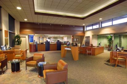 DRA and D3 Interiors worked together with Pinnacle Bank to establish the project budget to update the architectural features of this facility. The project upgrades included repair/replacement of exterior paving surfaces, repair/replacement of exterior building surfaces including new stone veneer, and renovation of the complete interior of the main level including new teller line, lobby and administrative offices.